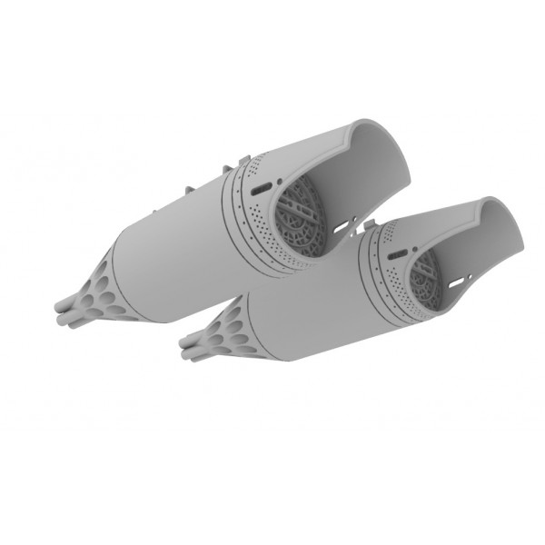 Set of two UB-32A-24 rocket pods, empty, without rockets, so it is possible to see through the empty tubes. The rocket pod is made as a 3D print. The use is universal Mi-24 helicopter.
